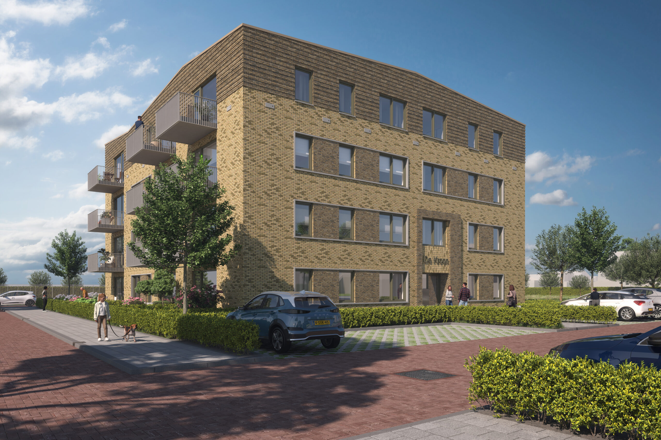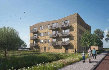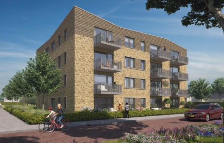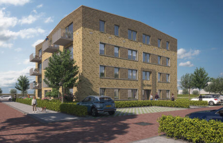 Het plan betreft 21 appartementen in de sociale huur voor Mozaiek Wonen. We hebben een compact alzijdig gebouw ontworpen met een mooie centrale binnenruimte, dit vanuit de uitvraag en voortbordurend op het stedenbouwkundig concept van Wissing Stedenbouw. Het appartementengebouw komt in de wijk naast het bekroonde IKC de Brug te staan. In het ontwerp sluiten we hier mooi op aan, de oplopende daklijnen vormen een verbijzondering als kroon op het gebouw met gesinterd baksteenmetselwerk in reliƫf gemetseld. De kaders om de kozijnen benadrukken de horizontaliteit en sluiten aan bij de naastgelegen rijwoningen. Een mooi accent als overgang tussen de bestaande kern en nieuwe uitbreidingswijk Wijde Wiericke te Nieuwerbrug.